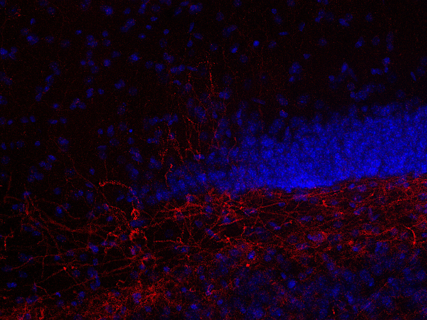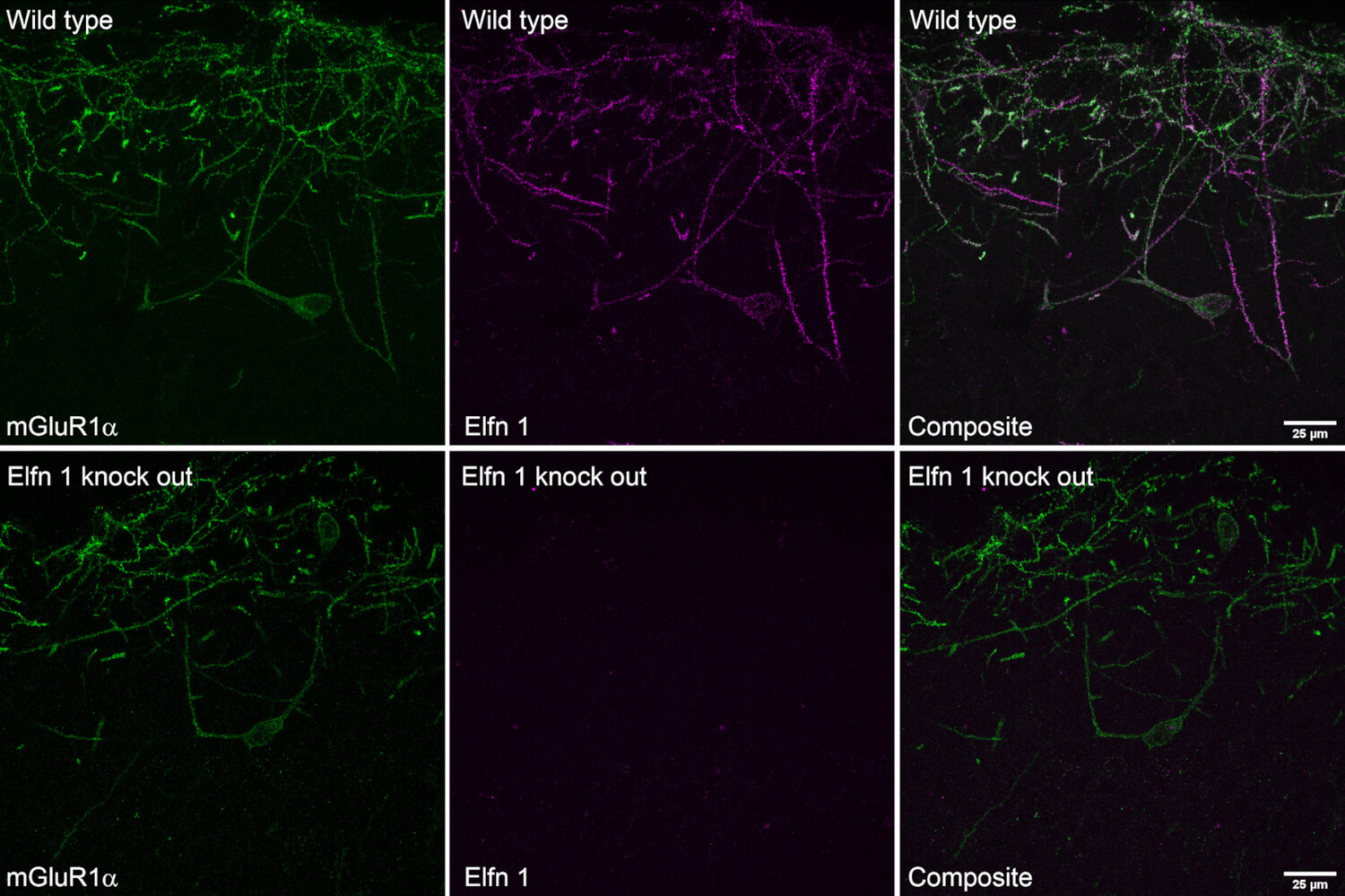 Extracellular leucine-rich repeat and fibronectin type-III domain-containing protein 1 (Elfn1) is a post-synaptic protein that regulates circuit dynamics in the central nervous system (1) and is expressed with increasing levels during postnatal development (2).