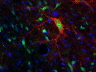 Neurocan is a secreted brain-specific chondroitin sulfate proteoglycan (CSPG) whose expression and proteolytic cleavage are developmentally regulated (1). It belongs to the lectican family, is a component of the extracellular matrix and interacts with numerous molecules like Hyalorunan, Tenascins, N-CAM and more (2).