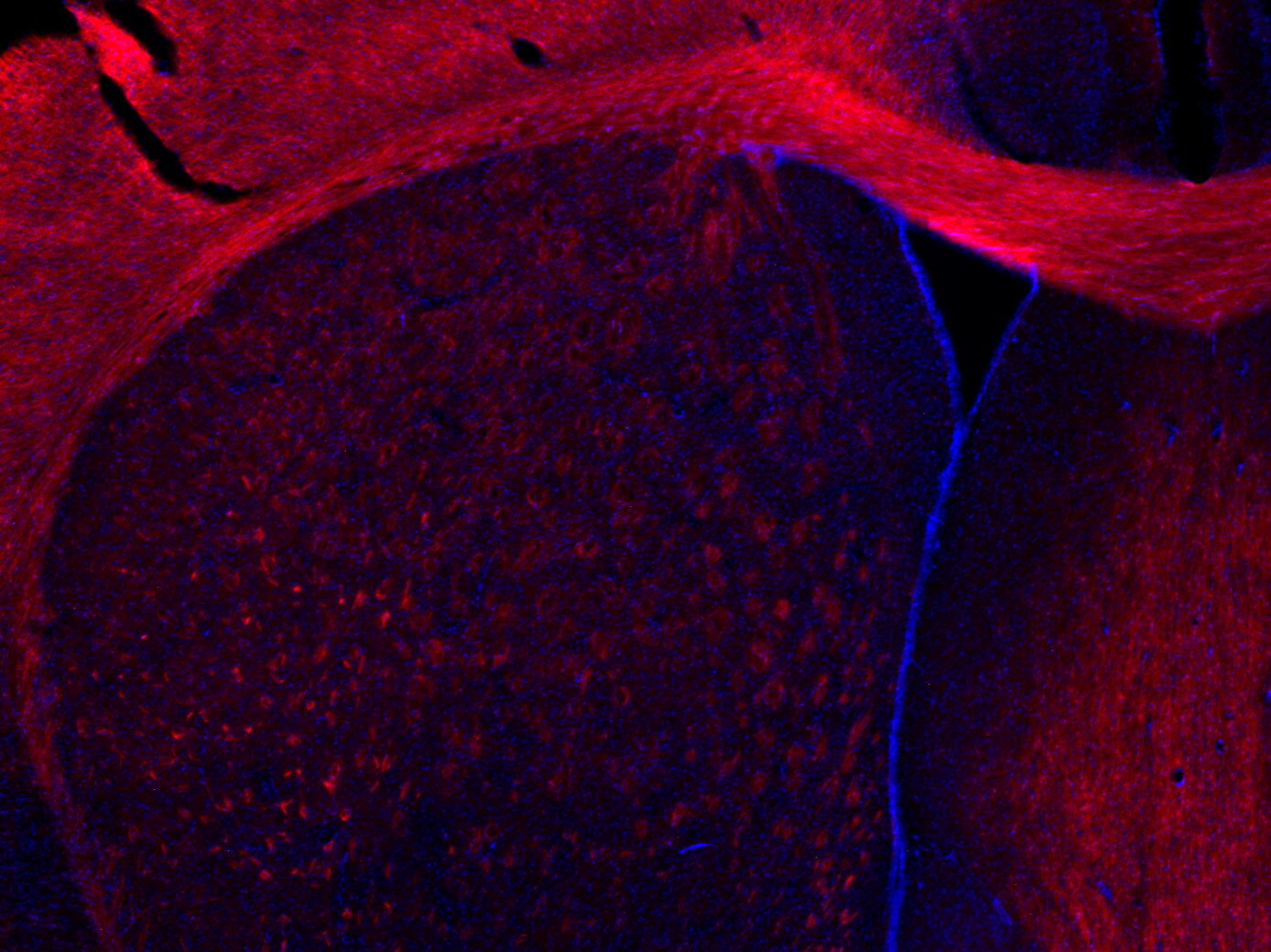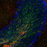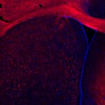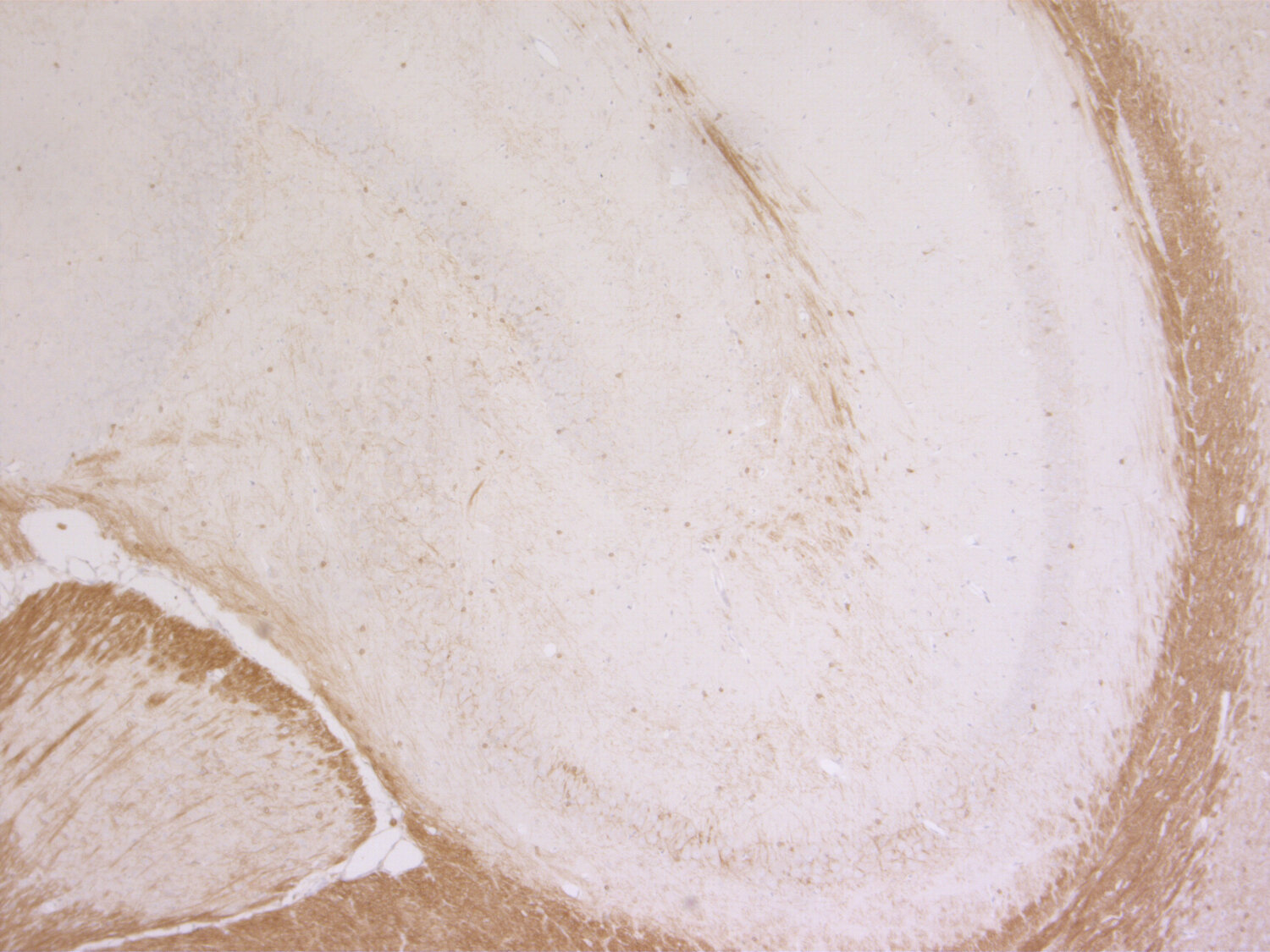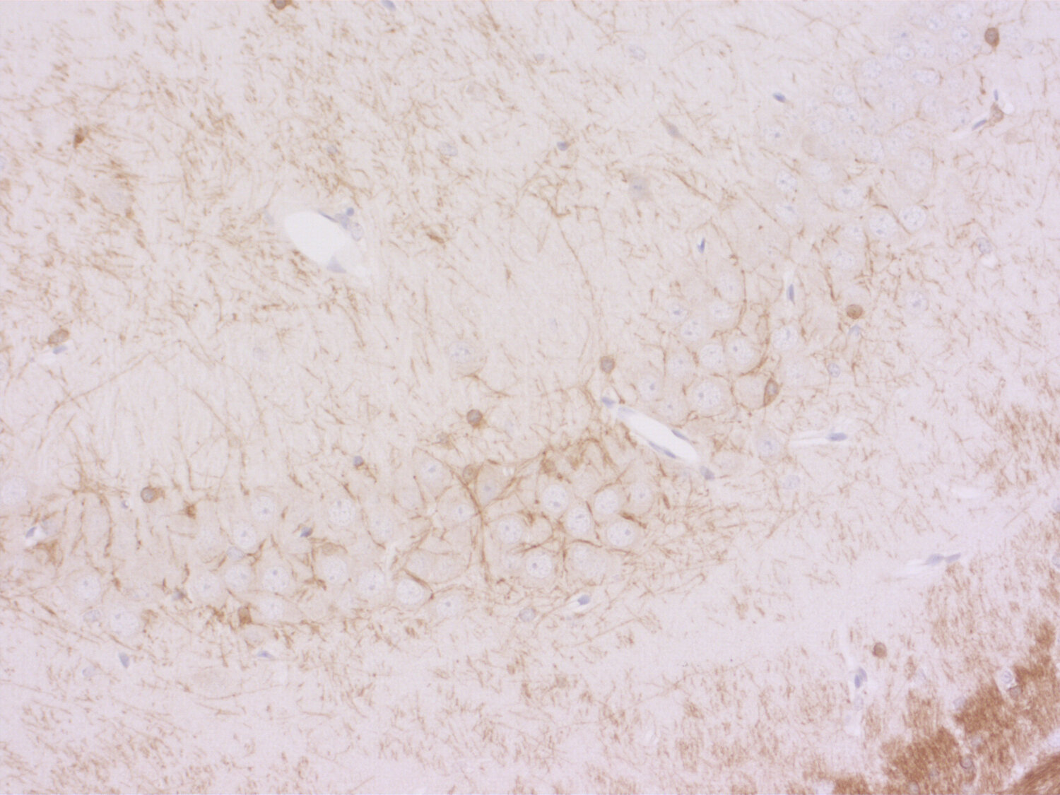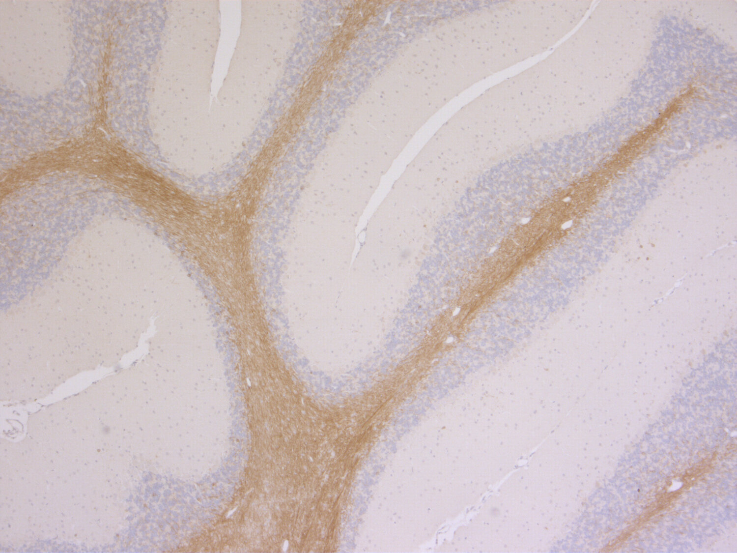 Opalin also called Tmem10 is a transmembrane protein detected specifically in mammalian oligodendrocytes. Opalin homologs are found only in mammals and not in the genome sequences of other animal classes (1). Deficient mice are born the expected Mendelian ratio and have a normal body shape and weight. No obvious abnormalities in gross anatomy or major myelin protein components nor in the compartment of myelinated axons and oligodendrocyte maturation. Nevertheless, deficient mice display increased exploratory activity in a novel environment (2).