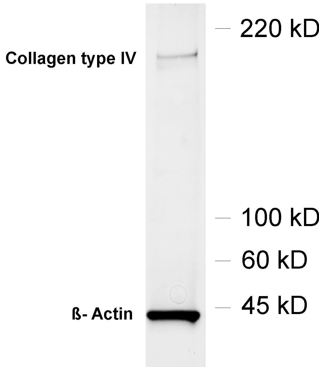 | Immunogen | human heterotrimeric Collagen type IV containing two α 1-like (UniProt Id: P02462) and one α 2-like (UniProt Id: P08572) chains. |