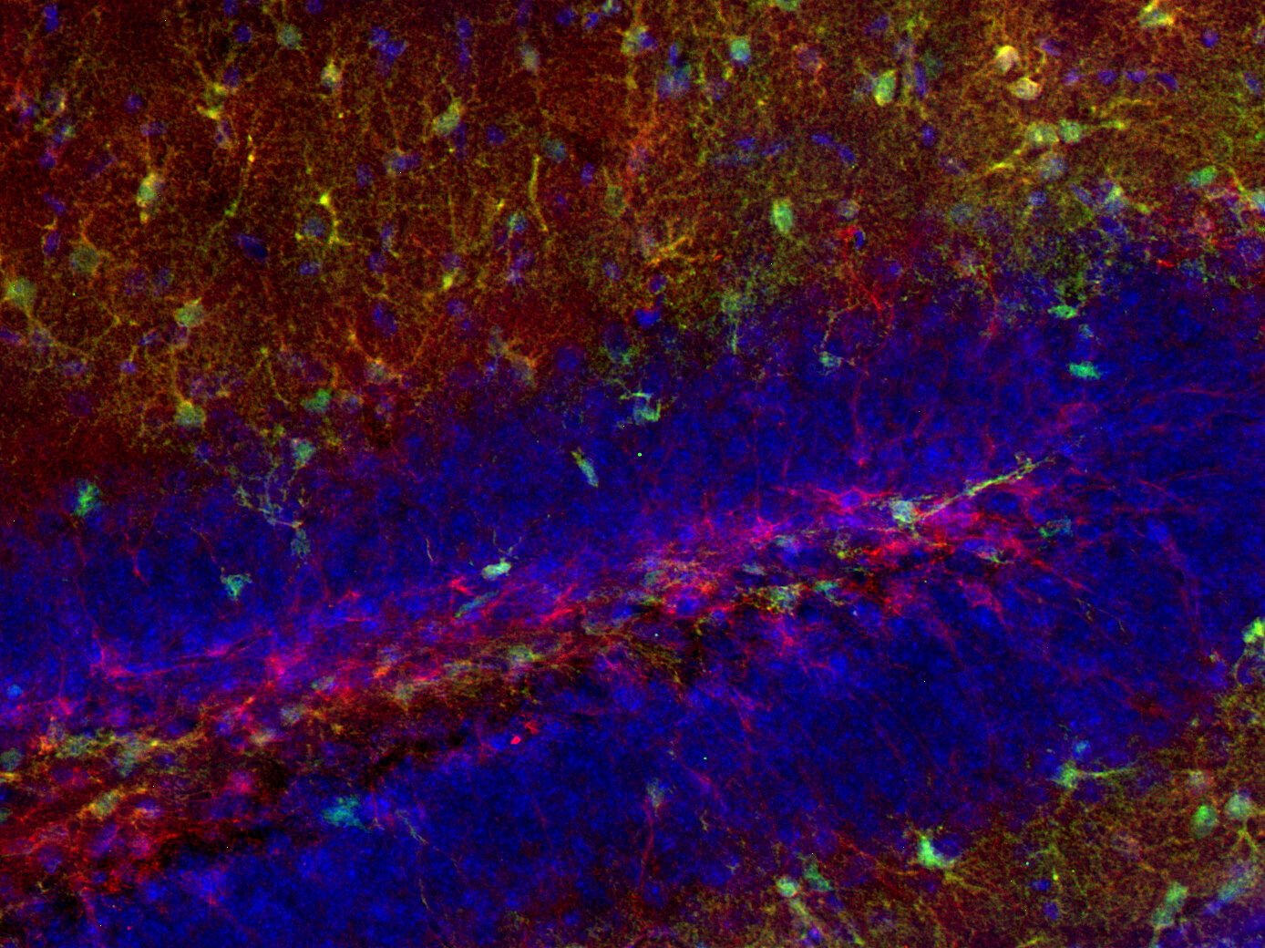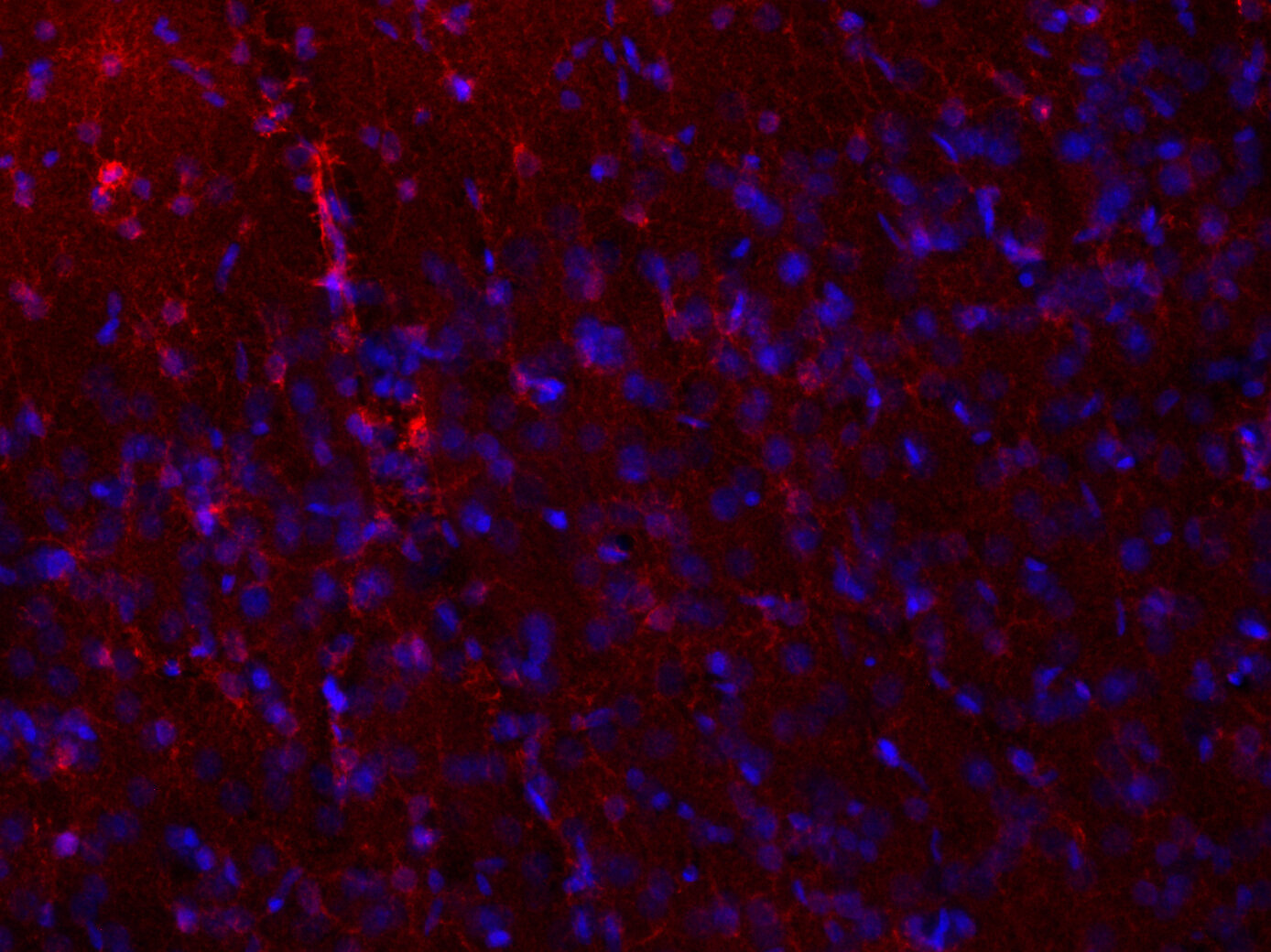 Aldolase C-positive Purkinje cells are organized in the cerebellum as stripes or bands that run from anterior to posterior across the cerebellum and alternate with bands of Aldolase C-negative Purkinje cells (2). Aldolase C is also expressed in astrocytes (3)