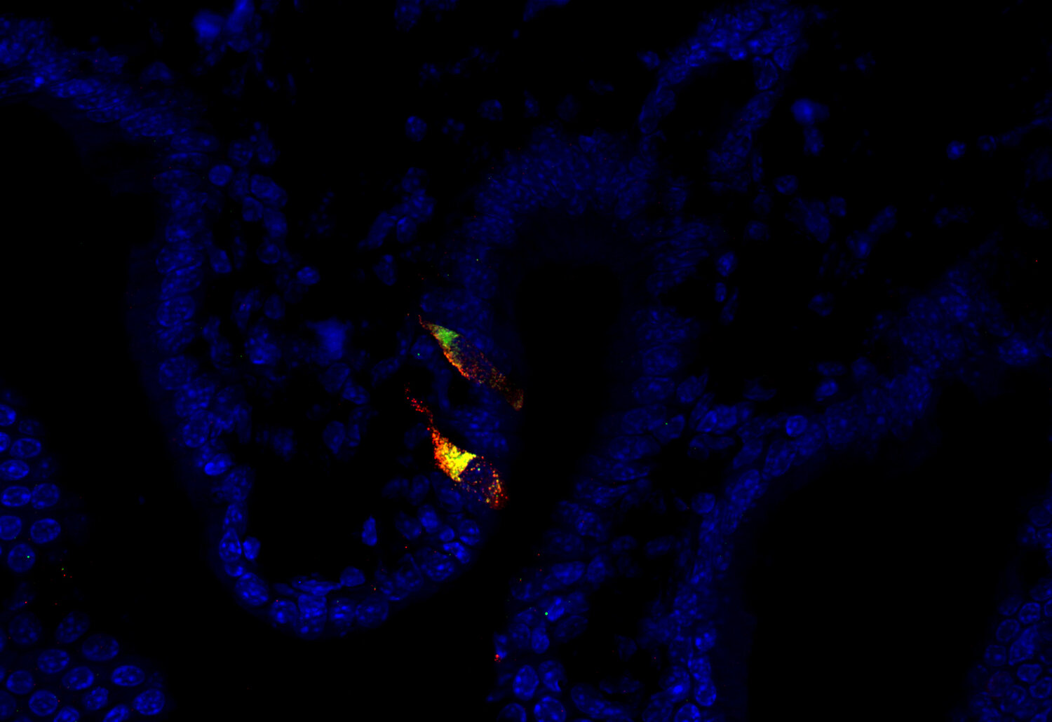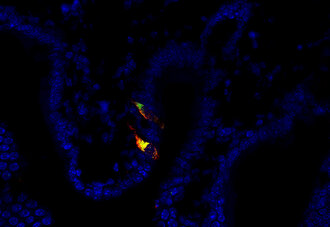 Glucagon-like peptide-2 (GLP-2) is a 33-amino acid peptide generated by tissue-specific posttranslational processing of the proglucagon precursor. It is primarily secreted by enteroendocrine L cells located in the distal small intestine and colon, and in much smaller quantities from certain neurons in the brainstem and the hypothalamus. Its secretion is stimulated by nutrient ingestion, especially fats and carbohydrates (1-3).