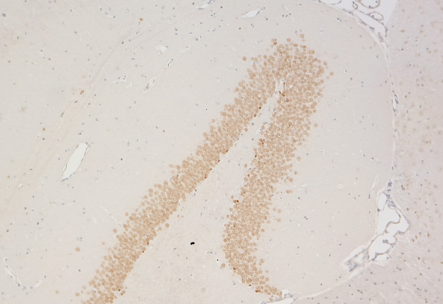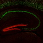 The prospero-related homeobox transcription factor 1, Prox1, is important for the embryonic development of various organs (1) including the eye, liver, pancreas, lymphatic system, heart and the central nervous system (CNS) (2). It is a regulator of cell division with impact on e.g. neurogenesis and cancer development and progression. In the CNS, the expression is not restricted to the embryonic development and to precursor cells. Prox1 is a well-known marker for granule cells of the dentate gyrus (DG) during embryonic development, adult neurogenesis but also for mature granule cells in the adult brain (3). Weaker expression can also be detected outside the DG of the adult brain. Prox1 was shown to be expressed in oligodendrocyte progenitors, e.g. in the subventricular zone and the corpus callosum (4) and in a subtype of cortical interneurons (5).