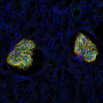 100 µg purified IgG, lyophilized. Albumin and azide were added for stabilization. For reconstitution add 100 µl H2O to get a 1mg/ml solution in PBS. Then aliquot and store at -20°C to -80°C until use. Antibodies should be stored at +4°C when still lyophilized. Do not freeze! |