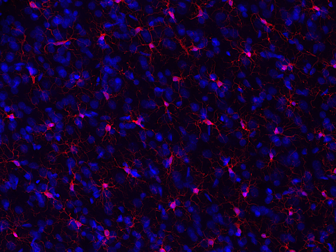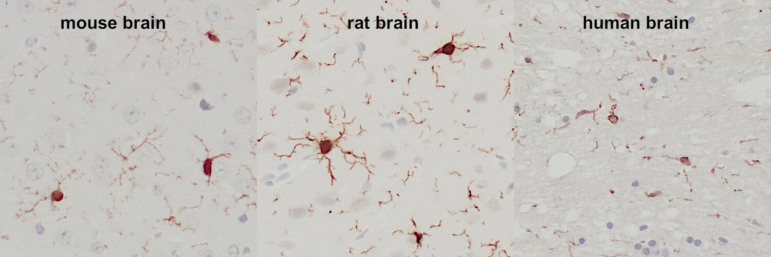 Microglia represent the resident macrophages in the nervous system and are the smallest of the glial cells with cell bodies of only 2-5 µm in diameter. In the CNS IBA1 upregulation is associated with neuroinflammatory response (3).