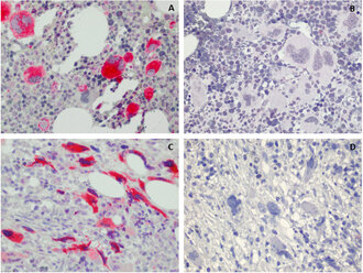 It labels the megakaryocytes in myeloproliferative neoplasms (essential thrombocythaemia (ET) and primary myelofibrosis (PMF)) with CALR mutation and enables to distinguish them from polycythemia vera (PV), from CALR mutation negative ET and PMF and from reactive bone marrow.