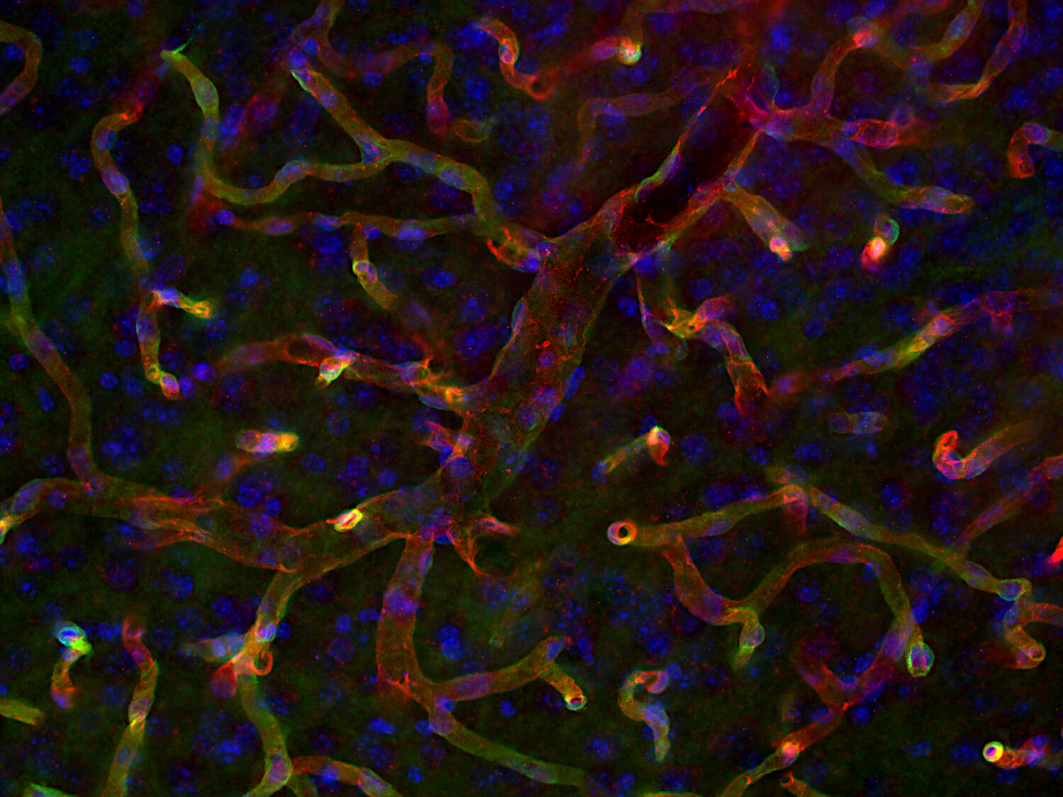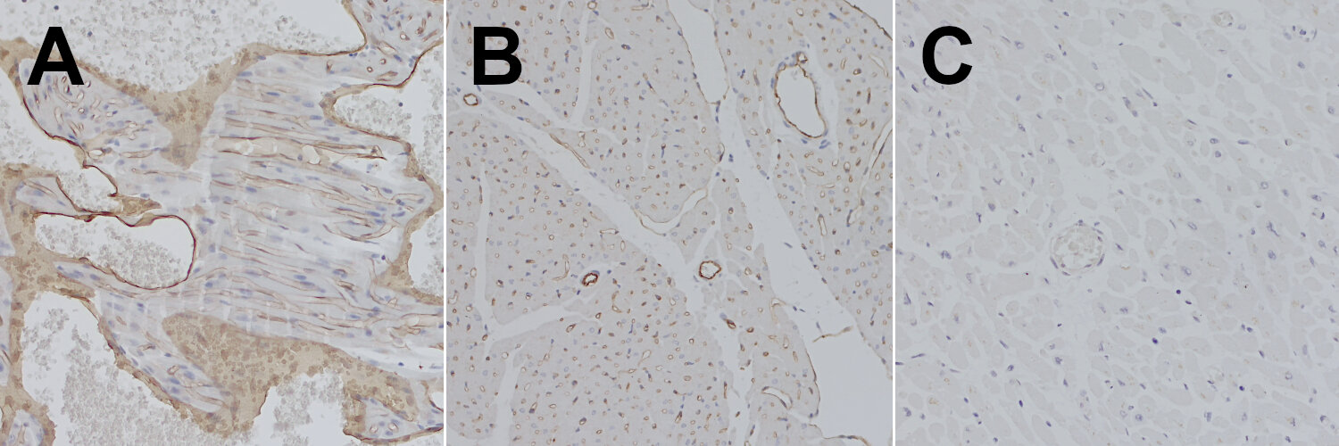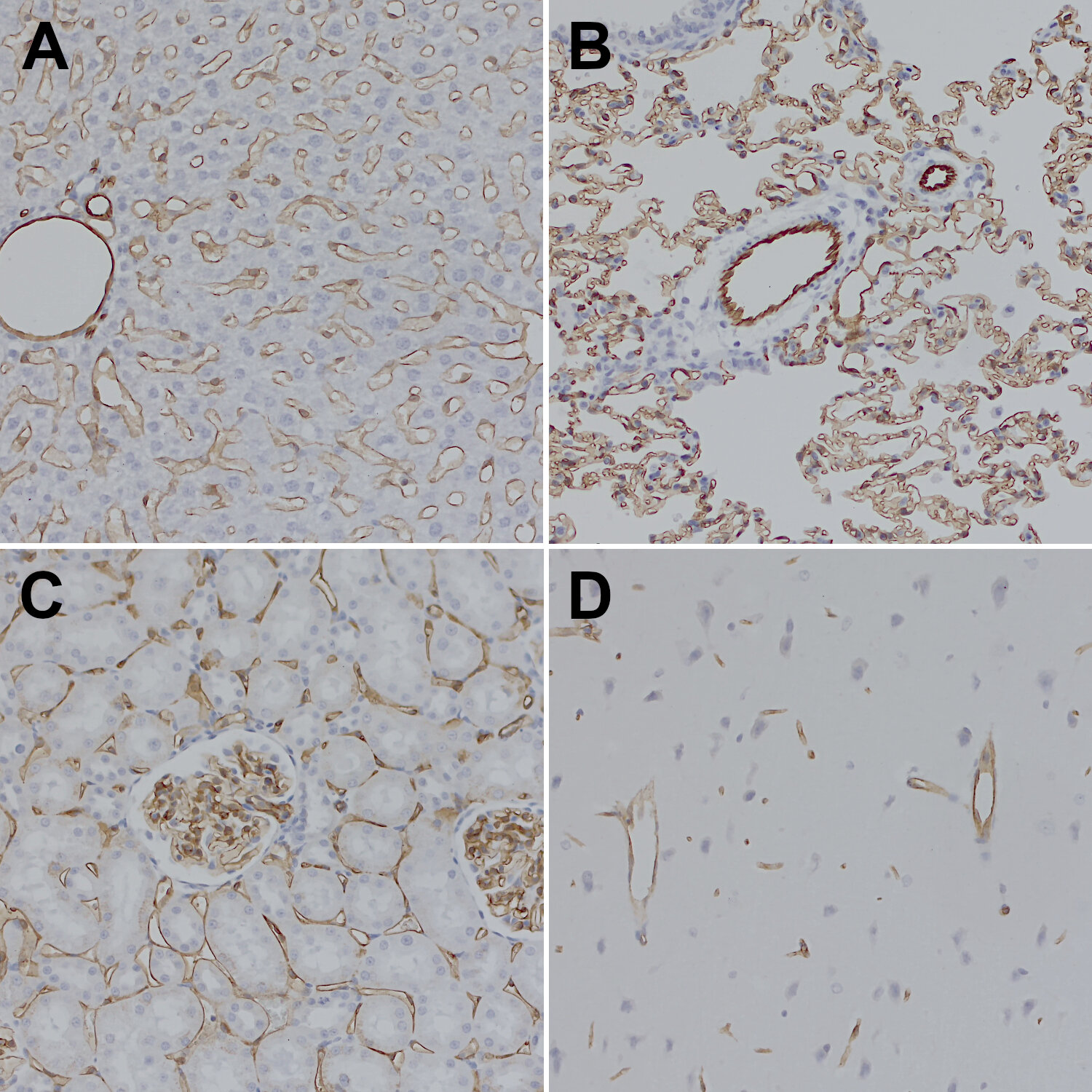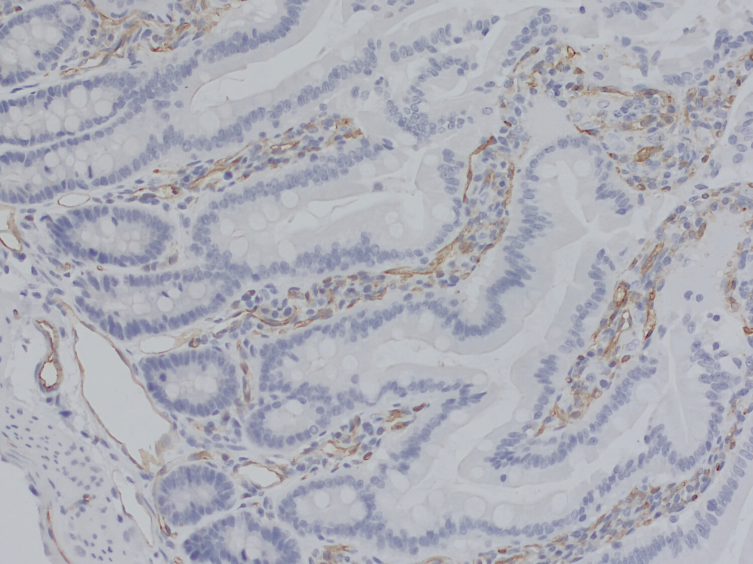 CD31 or platelet/endothelial cell adhesion molecule-1 (PECAM-1) is a cell adhesion molecule that contains a single trans-membrane domain and 6 Ig-like C2-type (immunoglobulin-like) domains (1). It is expressed on the surface of leukocytes and platelets and is primarily concentrated at endothelial cell-cell junctions (2). CD31 plays a role in several important biological processes, such as vascular development, maintenance of vascular endothelial barrier function and leukocyte emigration at inflammatory sites. In addition, CD31 promotes cancer metastasis by inducing epithelial-mesenchymal transition (3).