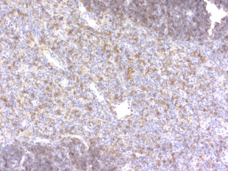 CD 8 is a heterodimeric T-cell surface glycoprotein that consists of a CD 8a (alpha) and beta chain. It identifies cytotoxic/suppressor T-cells that interact with MHC class I bearing targets. CD 8 is thought to play a role in the process of T-cell mediated killing. CD 8 alpha chains binds to class I MHC molecules alpha-3 domains.