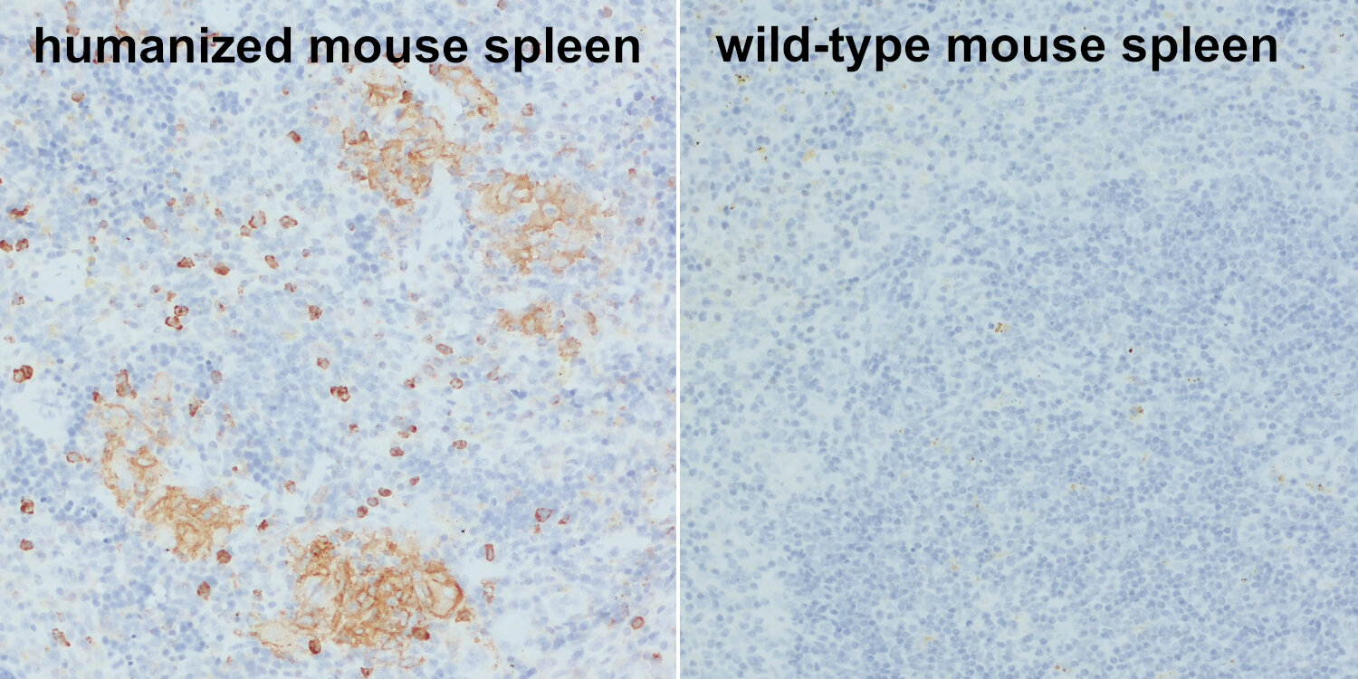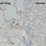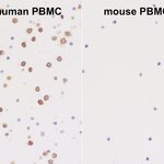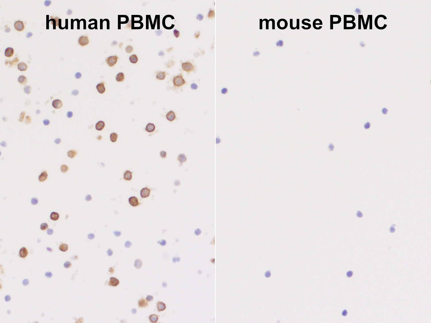 IHC-P: This antibody shows weak non-specific cross-reactivity to murine macrophages after antigen retrieval at very high temperatures (121°, pressure cooker). Use appropriate controls when optimizing your IHC-P protocol for detection of human cells in humanized mouse models. |
