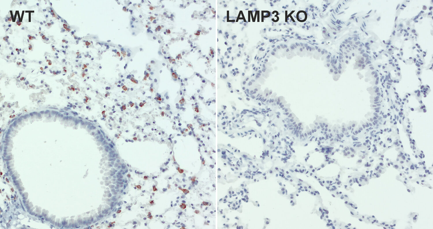 LAMP3 (lysosome-associated membrane glycoprotein 3), also referred to as DC-LAMP (dendritic cell LAMP) or CD 208, is a member of the LAMP protein family and a single-pass type I transmembrane protein that can be variably glycosylated. It is specifically expressed in lung type II pneumocytes and by activated human dendritic cells (1, 2).