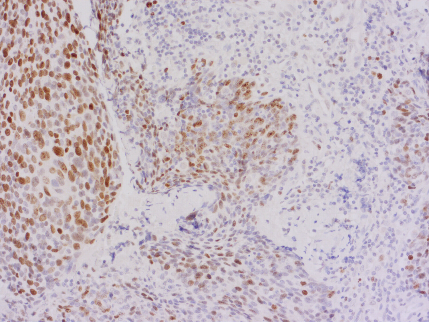 Immunohistochemical detection of Ki 67 is a simple and reproducible method to determine the tumour proliferative index and is a predictive and prognostic biomarker in certain types of human cancer, such as breast cancer, gastric cancer or prostate cancer. Moreover, higher Ki 67 scores may be associated with increased tumor sensitivity to radiation therapy and chemotherapy.