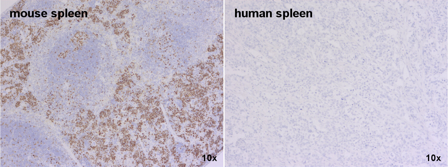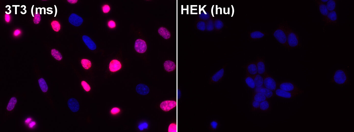 Reacts with: mouse (E9PVX6). No signal: human (P46013), rat (D4A0Y6). Other species not tested yet. |
