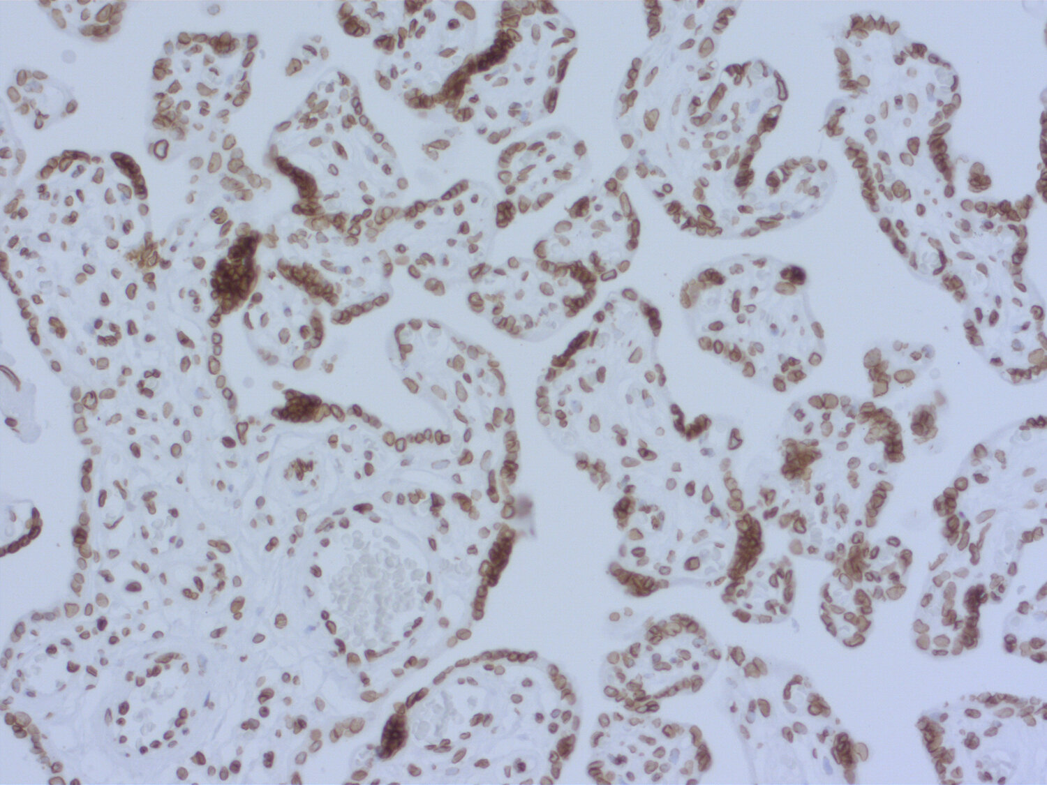 Detection of nuclear Lamin B1 in human FFPE placenta section