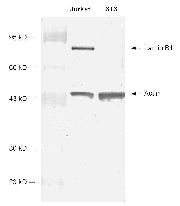 Immunogen Synthetic peptide corresponding to AA 8 to 19 from human LaminB1 (UniProt Id: P20700)