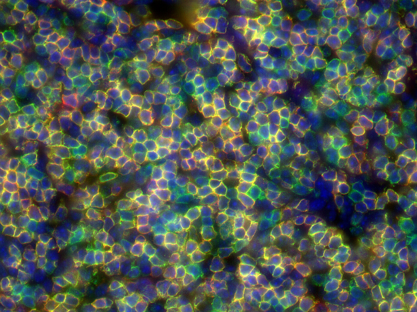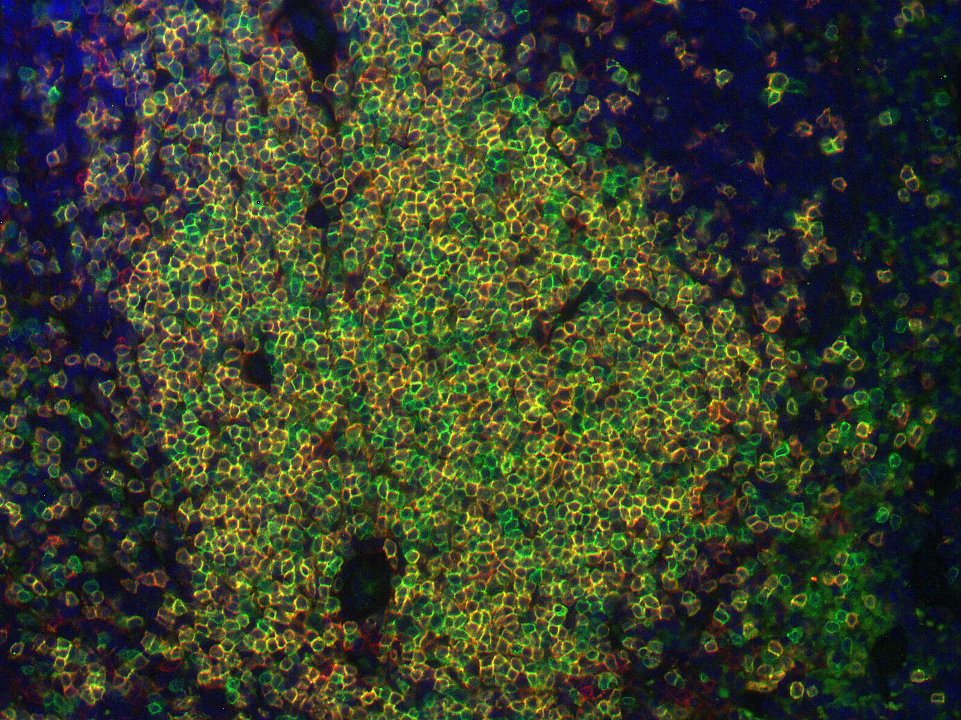Cluster of differentiation 3 (CD3) is a defining feature of cells belonging to the T cell lineage. It is composed of the four subunits CD3 gamma, CD3 delta, CD3 epsilon (CD3e) and CD3 zeta, that form a multimeric protein complex. This complex associates with the T cell receptor (TCR) and serves as a T cell co-receptor. The CD3 molecules contain immunoreceptor tyrosine-based activation motifs (ITAMs) that serve as the nucleating point for the intracellular signal transduction machinery upon TCR engagement. TCR/CD3 signaling is central to the initiation of antigen-specific T cell responses to pathogens and vaccines, as well as transplanted tissues, tumors, and autoantigens. CD3 is initially expressed in the cytoplasm of pro-thymocytes. During T cell maturation the expression of CD3 migrates to the cell-membrane. The specific appearance at all stages of T cell development make CD3 a useful immunohistochemical marker for T cells in tissue sections. In the clinical setting, CD3 is a relevant marker for the classification of malignant lymphomas and leukemias as the antigen remains present in almost all T-cell lymphomas and leukemias. It can also be used to detect T cells in celiac disease, lymphocytic and collagenous colitis.