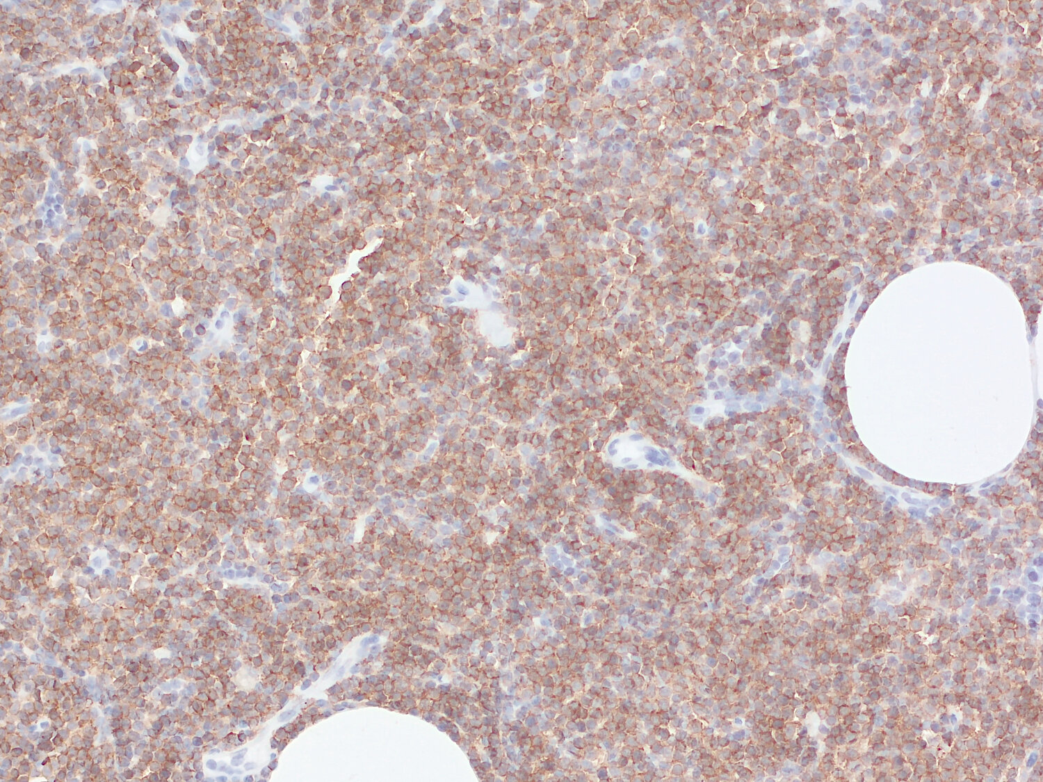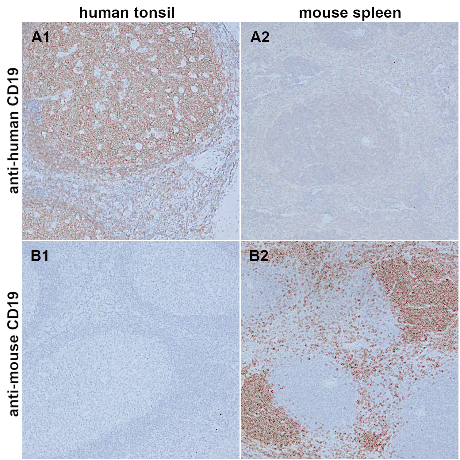 CD19 (Cluster of Differentiation 19) is a B cell-restricted signal-transduction molecule that plays an important role in the regulation of development, activation, and differentiation of B-lymphocytes. CD19 is considered as a biomarker for B-cells because of its continued expression from very early B cell development stages, being evident already on pro-B cells and on all later B cell stages, until plasma cell terminal differentiation, when its expression is lost. In complex with CD21 (complement receptor-2), CD81 and CD225 (Leu-13), CD19 functions as a dominant signaling receptor on the surface of mature B cells (1). CD19 is instrumental in B cell homeostasis and lowers the threshold of B cell receptor crosslinking necessary to effect B-cell activation and sustain proliferation upon antigen encounter (2). Dysregulated CD19 expression has been implicated in several autoimmune diseases and CD19 is expressed in most acute lymphoblastic leukemias (ALL), chronic lymphocytic leukemias (CLL) and other B cell lymphomas (3). Therefore, CD19 has gained attention as a potential target in the therapy of B-cell malignancies (4).