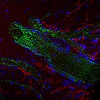 CD163 is a member of the group B scavenger receptor cysteine-rich (SRCR) superfamily expressed on human and murine macrophages. CD163 is also expressed in human monocytes, but not in circulating mouse monocytes (1). CD163 expression is significantly induced by anti-inflammatory stimuli like glucocorticoids and dexamethasone. Inflammatory stimuli like interferon γ and LPS suppress CD163 expression in macrophages (2). In mice, CD163 is mainly expressed by tissue-resident macrophages including Kupffer cells of the liver, red pulp macrophages in the spleen, perivascular macrophages of the CNS (3), and bone-marrow resident macrophages (4), but not by classical bone-marrow derived macrophages (4). In malignant tumors in mice and humans, macrophage CD163-mediated induction of IL-6 promotes tumor development and progression (4). The pool of tumor-associated macrophages (TAMs) is composed of both newly recruited monocyte derived macrophages and resident macrophages (5). CD163-positive tissue-resident macrophages have been shown to play a specific role in the malignant spread of disseminated tumor cells and the development of invasive disease in a mouse model of metastatic ovarian cancer (1). CD163 is considered useful to distinguish CD163-positive resident macrophages from CD163-negative bone-marrow derived macrophages in mice (4).