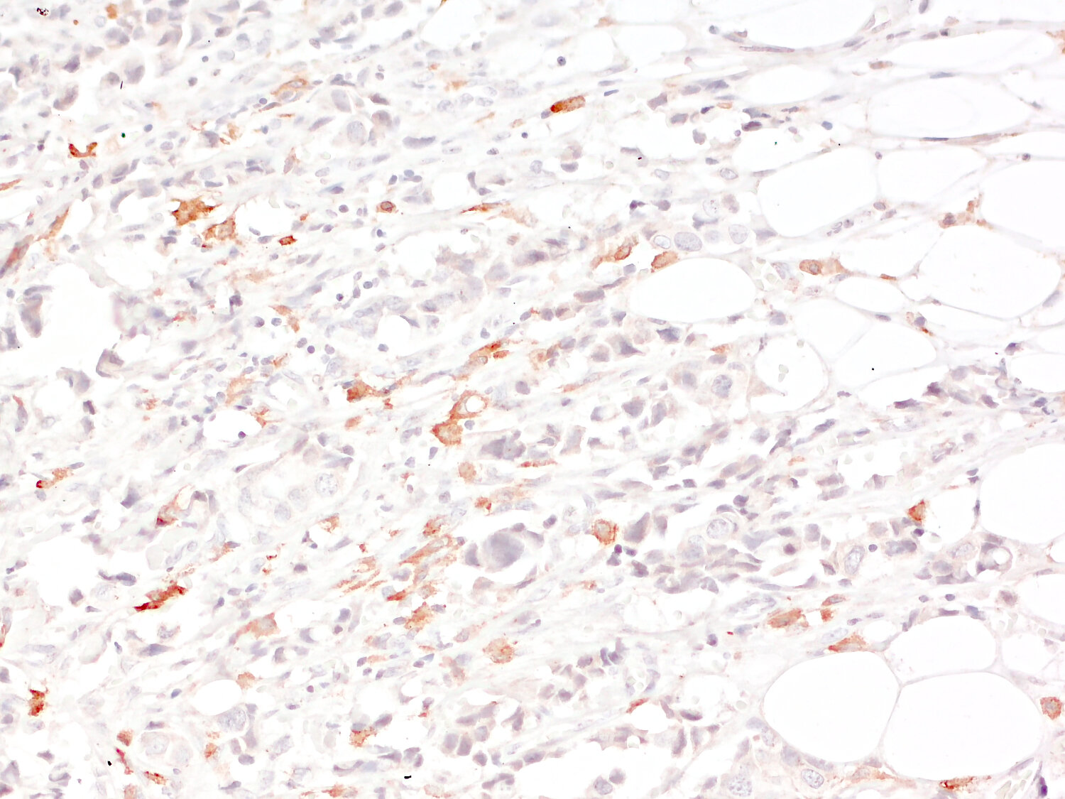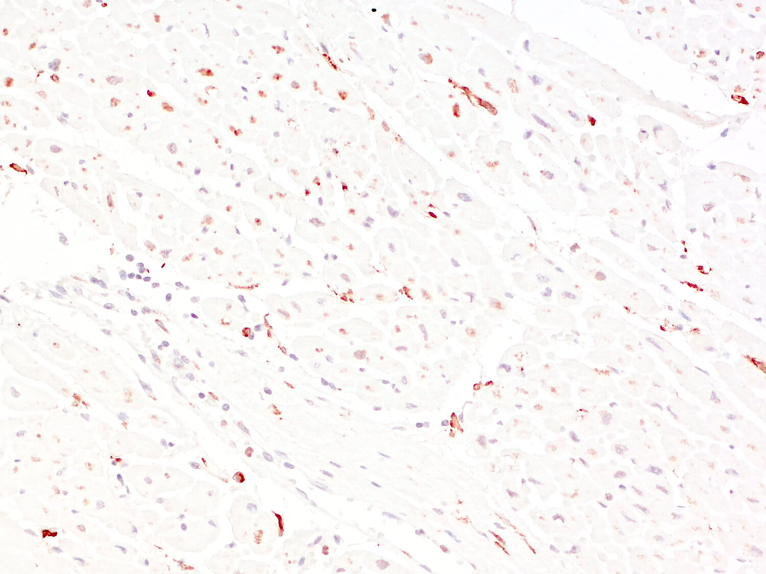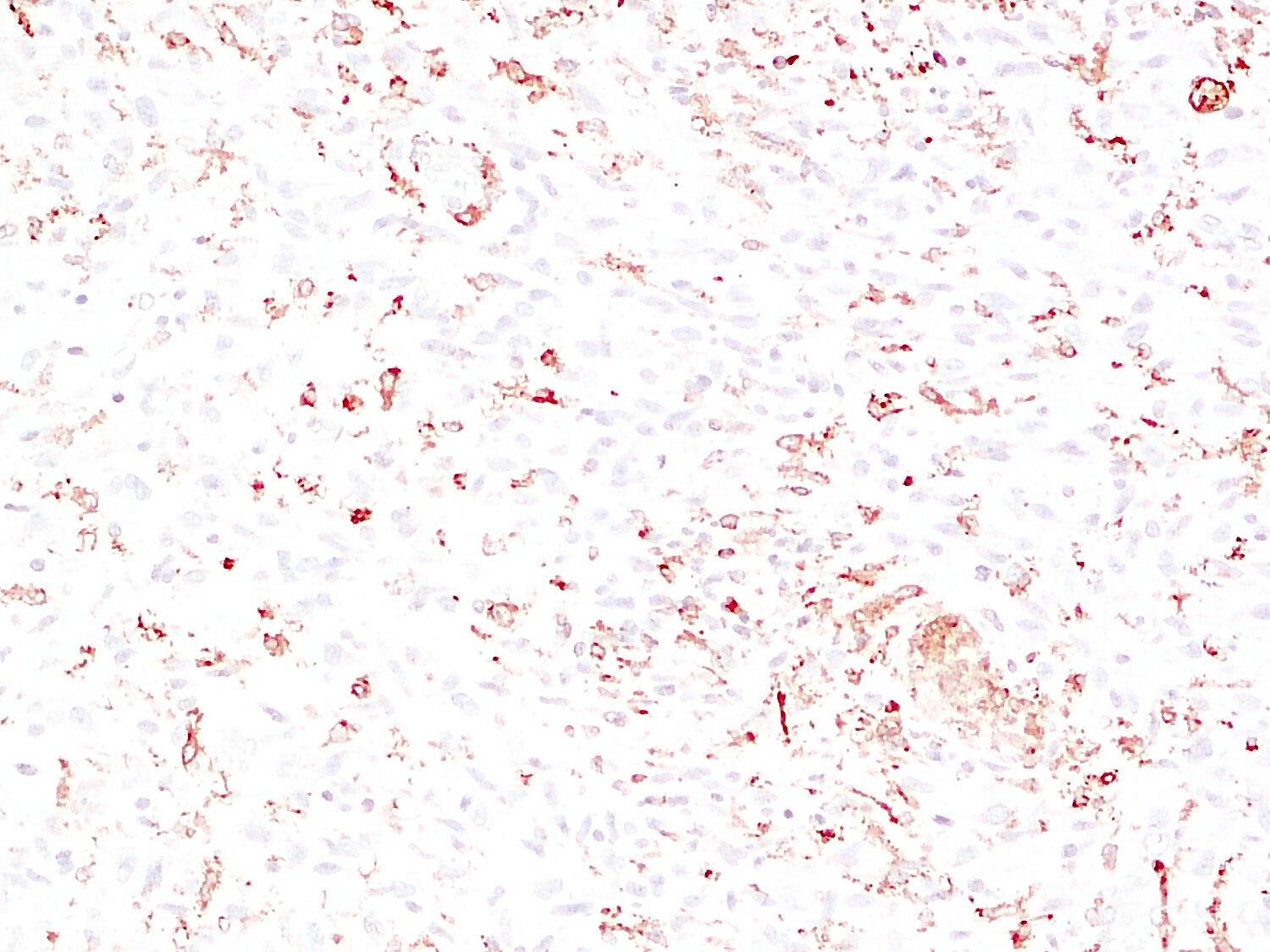 CD163 is a member of the group B scavenger receptor cysteine-rich (SRCR) superfamily expressed on human and murine macrophages. CD163 is also expressed in human monocytes, but not in circulating mouse monocytes (1). CD163 expression is significantly induced by anti-inflammatory stimuli like glucocorticoids and dexamethasone. Inflammatory stimuli like interferon γ and LPS suppress CD163 expression in macrophages (2). In mice, CD163 is mainly expressed by tissue-resident macrophages including Kupffer cells of the liver, red pulp macrophages in the spleen, perivascular macrophages of the CNS (3), and bone-marrow resident macrophages (4), but not by classical bone-marrow derived macrophages (4). In malignant tumors in mice and humans, macrophage CD163-mediated induction of IL-6 promotes tumor development and progression (4). The pool of tumor-associated macrophages (TAMs) is composed of both newly recruited monocyte derived macrophages and resident macrophages (5). CD163-positive tissue-resident macrophages have been shown to play a specific role in the malignant spread of disseminated tumor cells and the development of invasive disease in a mouse model of metastatic ovarian cancer (1). CD163 is considered useful to distinguish CD163-positive resident macrophages from CD163-negative bone-marrow derived macrophages in mice (4).