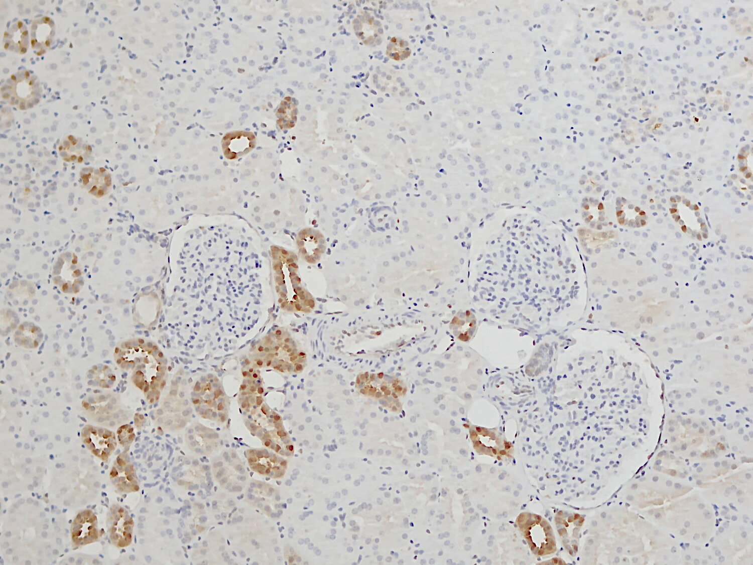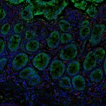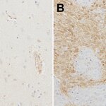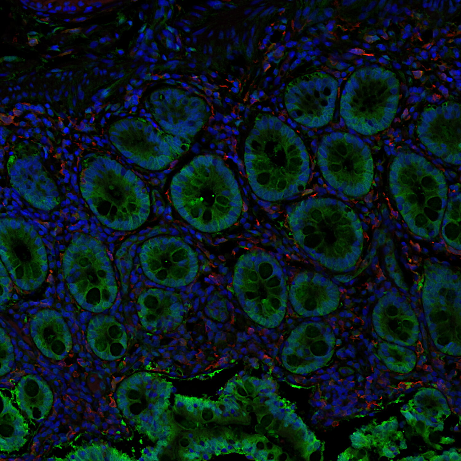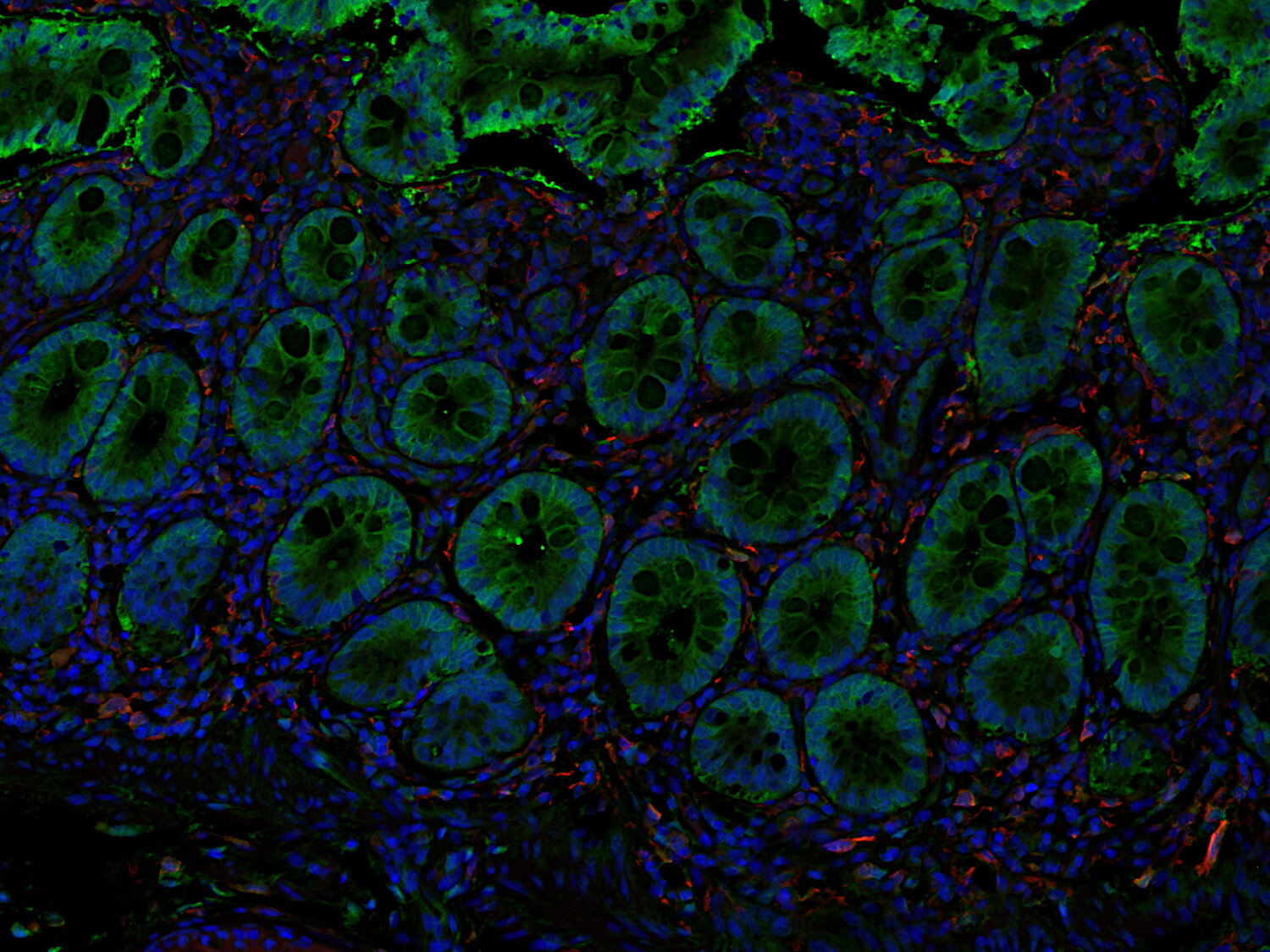 Galectin-3 (Gal-3, Mac-2) is a β-galactoside binding protein that is predominantly located in the cytoplasm and shuttles into the nucleus. In addition, it is secreted to the cell surface and into biological fluids. Depending on its localization, it exerts pleiotropic biological functions like cell growth, cell differentiation, inflammation, fibrogenesis, migration, apoptosis, and host defense (1). It is also involved in cancer pathogenesis, proliferation, and spreading of metastasis (2). Galectin-3 is highly expressed in the covering epithelia of the digestive tract and the urinary system (3) and plays important roles in the organization of renal and intestinal cells. Furthermore, Galectin-3 has been identified in a variety of other cell types including fibroblasts, keratinocytes, granulocytes, dendritic cells, and macrophages (2). Galectin-3 is expressed by certain tissue-resident macrophages such as Kupffer cells in the liver, red pulp macrophages in the spleen, and alveolar macrophages in the lung (3). In the brain, Galectin-3 is abundant in activated microglia but not expressed in resting cells. Following brain injury, Galectin-3 triggers anti-inflammatory properties of microglia (4). In Alzheimer’s disease, Gal-3 expression is strictly associated with microglial cell activation around Aβ plaques. In stroke, Gal-3 was found to be expressed primarily in proinflammatory microglial cells (5).