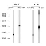 Reacts with: human (P17931). No signal: mouse (P16110). Other species not tested yet. |