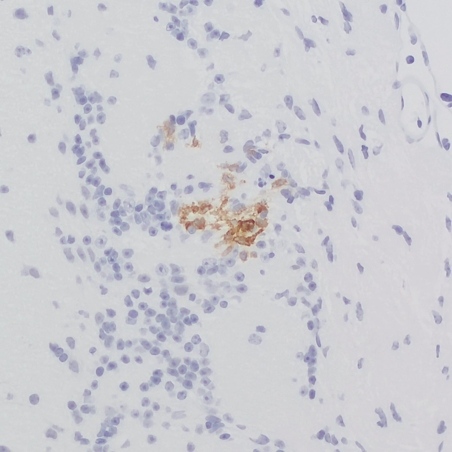 This antibody is a chimeric antibody based on the monoclonal rat antibody SY-171D8E8. The constant regions of the heavy and light chains have been replaced by rabbit specific sequences. The antibody can therefore be used with standard anti-rabbit secondary reagents. The antibody has been expressed in mammalian cells. |