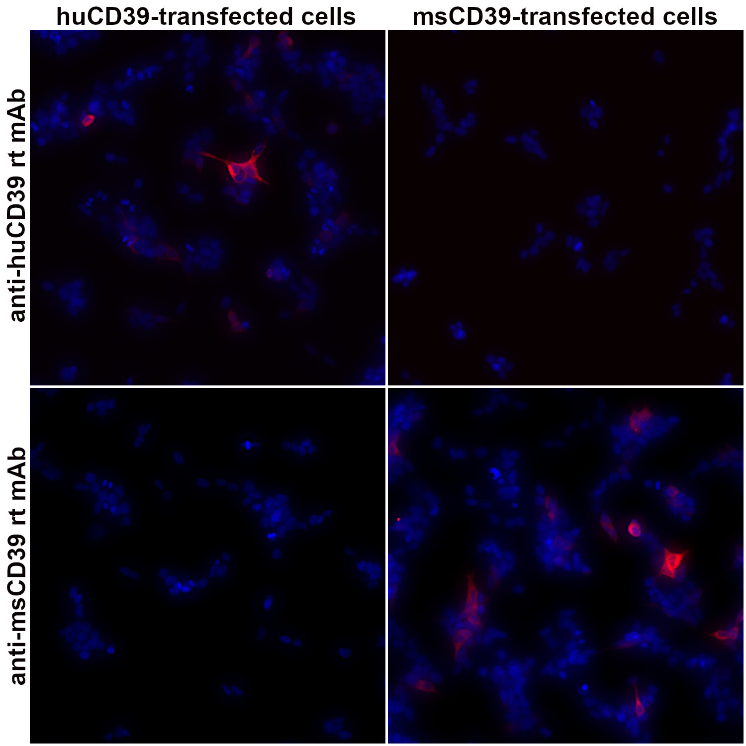CD39, also known as ENTPD1 (ecto-nucleoside triphosphate diphosphohydrolase), is a cell surface ectoenzyme that catalyzes ATP and ADP into AMP, which is subsequently converted into adenosine by CD73 (NT5E, ecto-5′-nucleotidase). The balance between extracellular ATP and adenosine is crucial for immune homeostasis and is tightly controlled by enzymatic activity, with CD39 serving as the rate-limiting enzyme (1). CD39 is highly expressed on vascular and immune cell populations such as B cells, NK cells, dendritic cells, Langerhans cells, monocytes, macrophages, mesangial cells, neutrophils and regulatory T cells (2). High CD39 expression has been found in numerous cancers, either on the tumor surface or in infiltrating immune cells. Targeting the CD39/CD73 pathway is currently explored as a therapeutic strategy for cancer treatment (3). In the brain, CD39 is constitutively expressed by microglia, endothelial and smooth muscle cells of the vasculature and involved in microglial processes ramification (4) and blood-brain barrier function. Significant induction of CD39 protein in microglia has been demonstrated in several neuroinflammation models. CD39 up-regulation by reactive microglia is suggested to be associated with an anti-inflammatory phenotype (5).