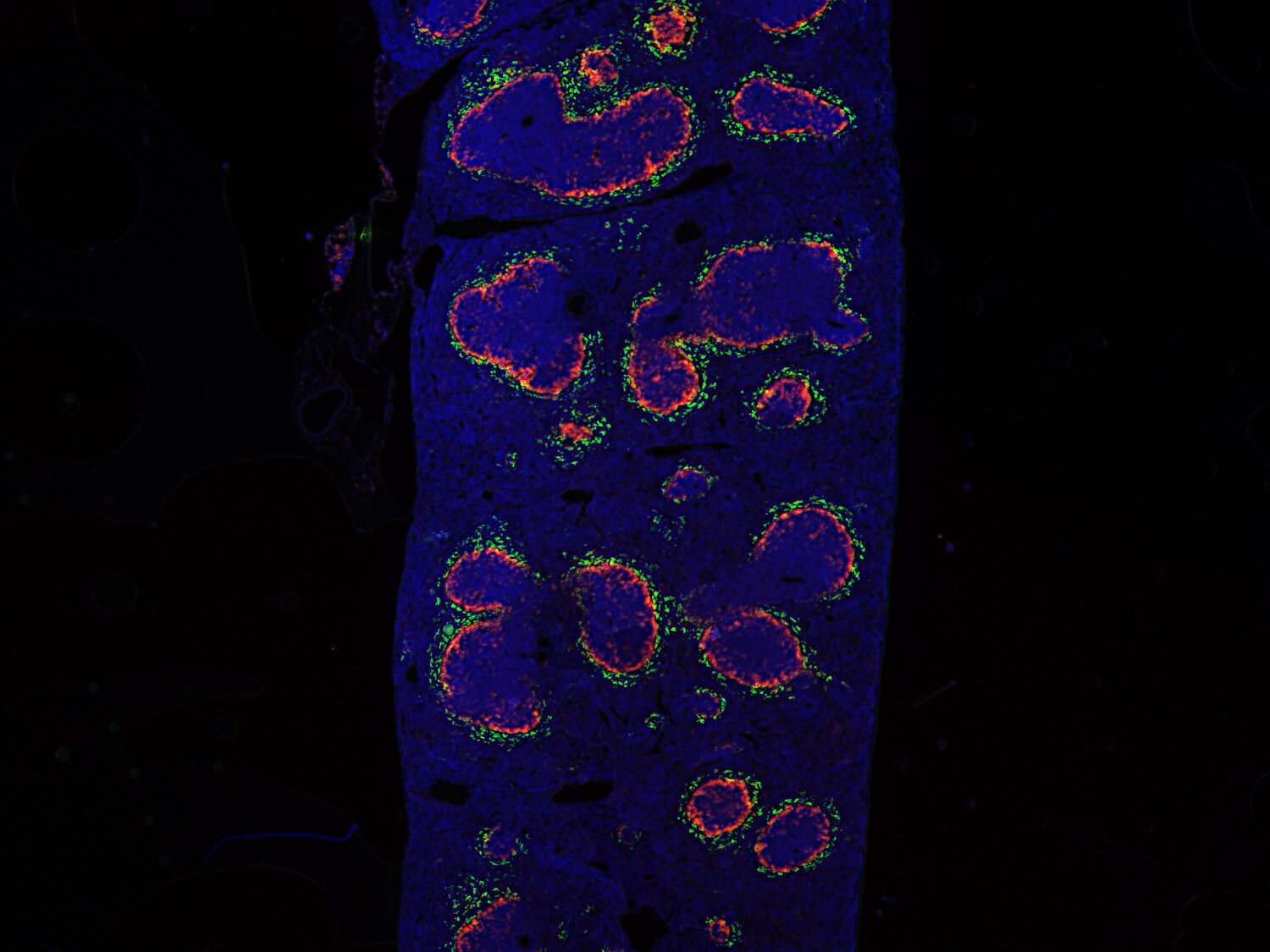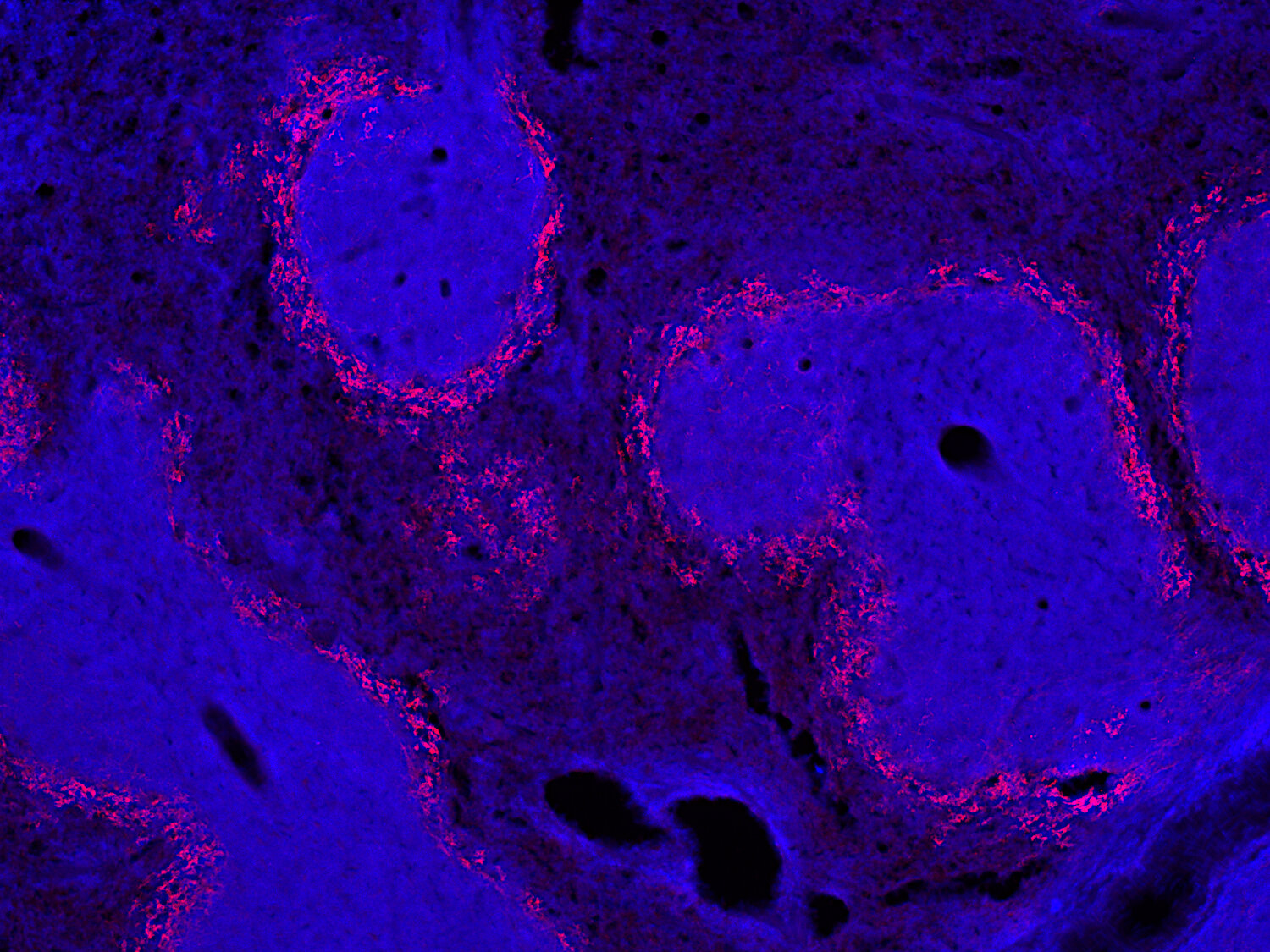 The macrophage receptor with collagenous structure (MARCO) belongs to the class A scavenger receptor (SR-A) family, all of which are transmembrane proteins with a homotrimeric structure (1). MARCO is constitutively expressed by peritoneal macrophages and splenic marginal zone macrophages. Its expression can be induced in other macrophages, such as Kupffer cells or alveolar macrophages, after bacterial infection or intravenous injection of LPS (2). MARCO mediates the binding of pathogens and unopsonized environmental particles, suggesting an important role in host defense (3). In tumor-associated macrophages, MARCO defines a subtype of suppressive TAMs (4) and is considered a potential prognostic and immunotherapeutic biomarker (5).