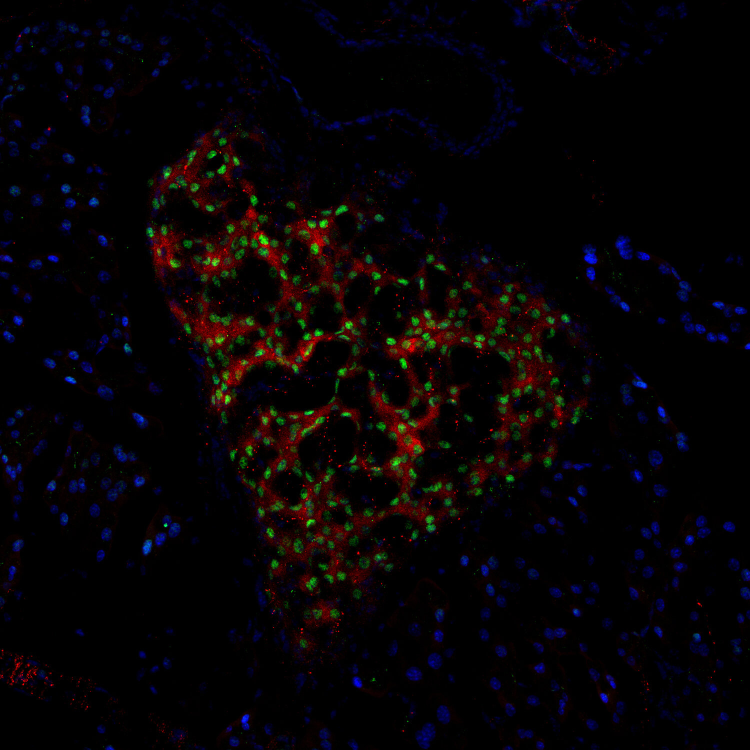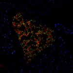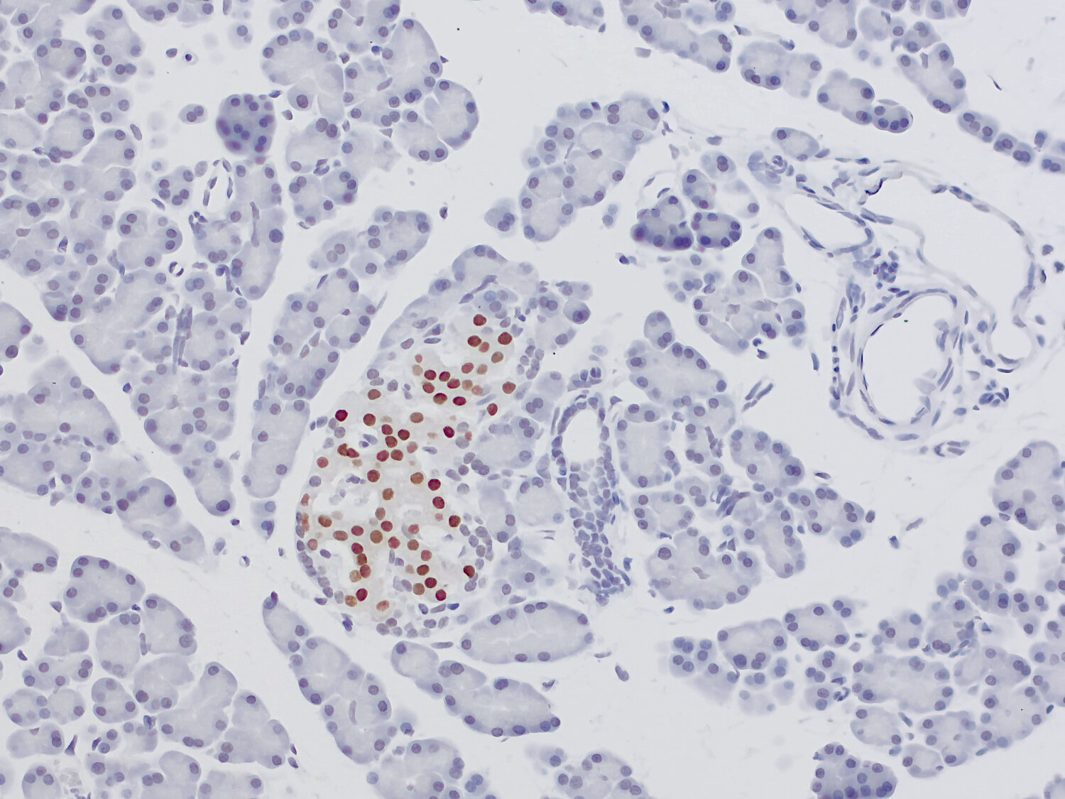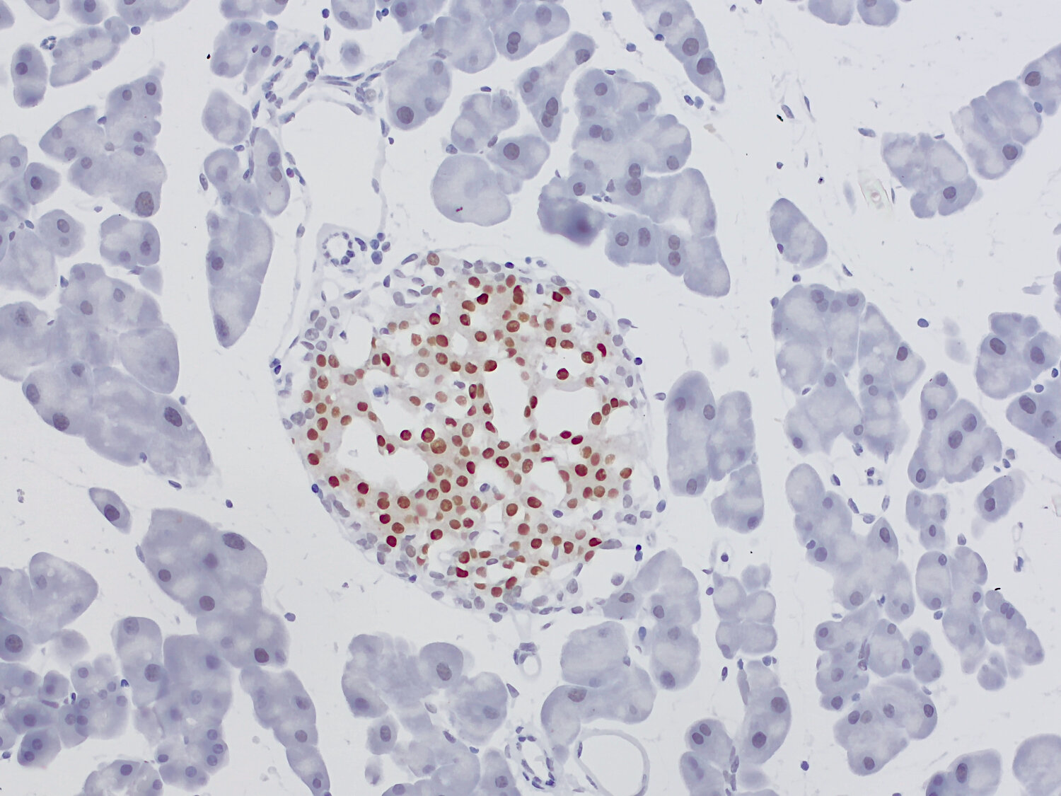 Maf (musculoaponeurotic fibrosarcoma) family proteins belong to the basic-leucine zipper family of transcription factors and are divided into large Maf and small Maf proteins depending on their molecular size. Four types of large Maf transcription factors have been identified in mice and humans: MafA, MafB, c-Maf and NRL (1). MafA is a β-cell-specific transcription factor in adult pancreatic islets and regulates glucose-stimulated insulin secretion (2). MafB, on the other hand, is specifically expressed in glucagon-expressing α-cells in the pancreas of adult mice. In the embryonic or neonatal pancreas, immature β-cells first express MafB, whereas MafA is expressed in mature β-cells and is essential for the maintenance of the mature phenotype (3). Several studies have shown, that the expression of MafA is impaired in β-cells of rodents and humans with diabetes (3). In addition to its role in the pancreas, MafA is also involved in the development of neuronal cells. For example, MafA is involved in the development of glutamatergic neurons in the olfactory bulb (4) and of dorsal root ganglia in the spinal cord (5).