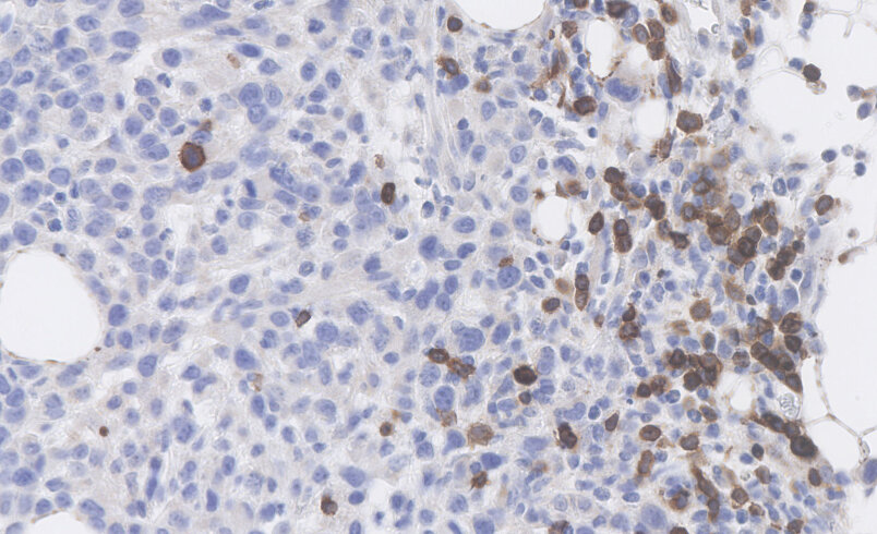 Figure 2: Staining for anti-mouse CD3e (cat. no. HS-413 117) in FFPE breast cancer model was performed on a Dako Autostainer, Courtesy: Discovery Services, Charles River, Freiburg, Germany.